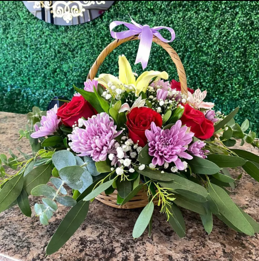 Canasta surtida de lily y rosas con follaje Descubre la magia de nuestra Canasta surtida de lily y rosas con follaje....