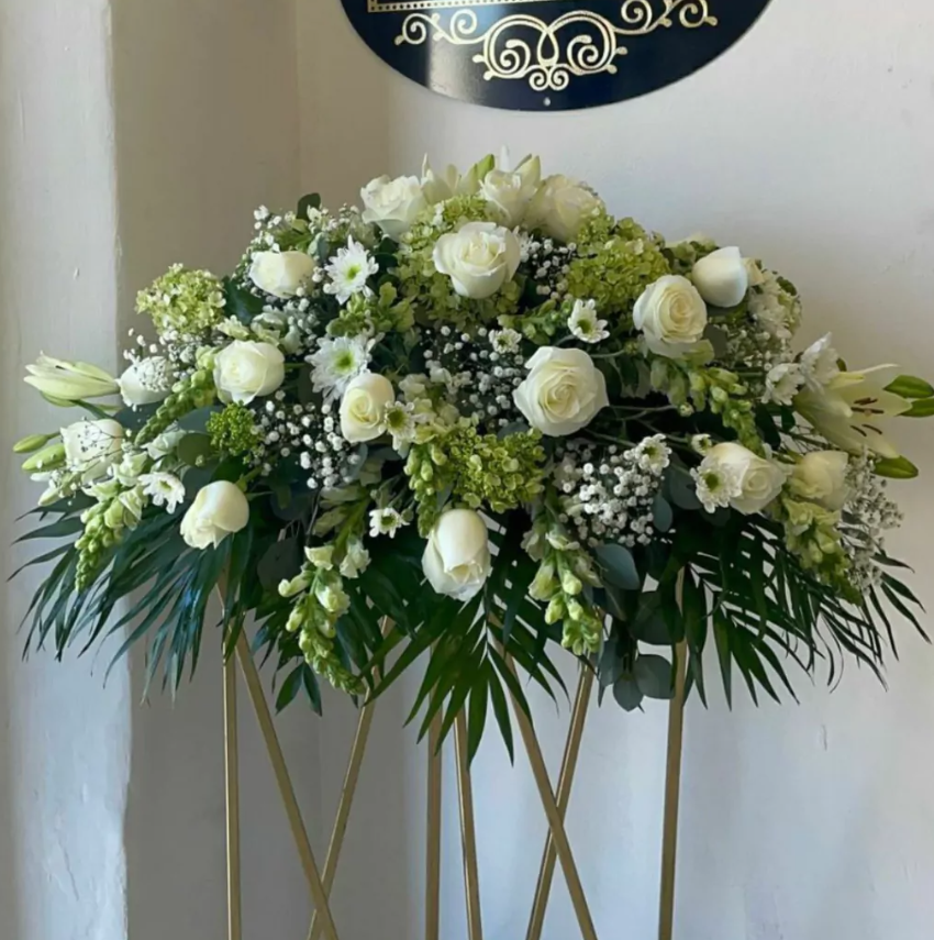 Embellece el último adiós con nuestro Cubre ataud de lujo, adornado con rosa blanca, perritos, margarita blanca, lily blanca y una variedad...