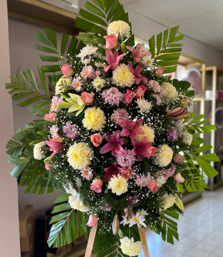 Medallon con lilys rosas, margaritas y pompones