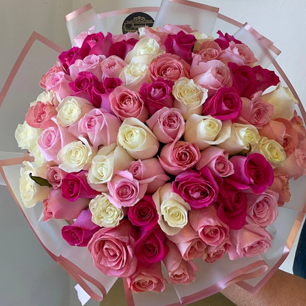Ramo de 50 Rosas Rosas y Blancas